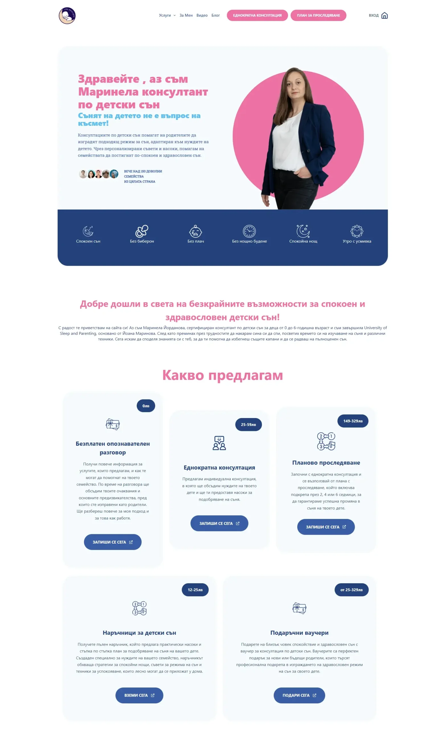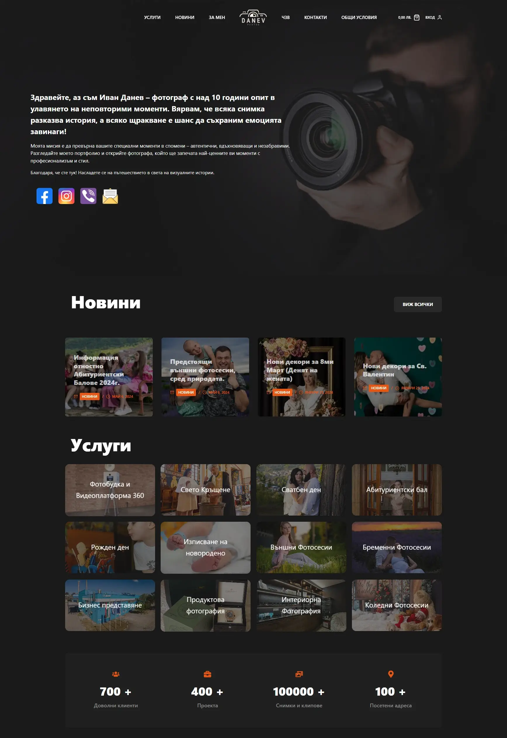 ПодбраниПроекти Маникюр, МаникюристкаAsya NailsAsya Nails е професионално студио за маникюр и ноктено изкуство, предназначено за всеки, който търси стил, качество и индивидуален подход към красотата на своите нокти.1 седмицаWordPresshttps://asyanails.com/Asya Nails Доставка на храна, Кетеринг, Поръчка на храна, ХранаPavilionaСайтът „Paviliona“ е българска платформа за онлайн поръчка и доставка на храна—предимно обедно меню, насочена към офиса или дома. 45WordPresshttps://paviliona.info/Paviliona Ремонтни дейностиNovastroyNovastroy е специализирана в проектиране, строителство, обзавеждане, поддръжка и ремонт на недвижими имоти, включително жилищни и нежилищни сгради.2 дниWordPresshttps://novastroy.bgNovastroy ТрансферTaxi RuseDanev Transfer предлага професионални таксиметрови услуги между България и Румъния, специализирани в маршрута Русе – Букурещ. 30 дниWordPresshttps://taxi-ruse-bucharest.info/Taxi Ruse Недвижими имотиHome4youHome4you е агенция за недвижими имоти, специализирана в продажбата и отдаването под наем на жилища и търговски обекти в България. НедовършенWordPressshttps://home4you.bg/Home4you Плувен басейнBeach MartenBeach Marten е съвременен плувен басейн, разположен на главния път Русе – Мартен, непосредствено до бензиностанция „Картел“. 3 дниWordPresshttps://beachmarten.com/Beach Marten ФотографияDanev PhotosDanevPhotos е професионално фотографско студио, ръководено от Иван Данев – фотограф с над 10 години опит в улавянето на неповторими моменти. 1 седмицаWordPresshttps://danev-photos.com/Danev Photos Онлайн магазинElegantaromasElegant Aromas е онлайн магазин, посветен на предлагането на висококачествени парфюмни отливки от 100% оригинални маркови парфюми.2 дниWordPresshttps://elegantaromasbg.com/Elegantaromas Недвижими имотиReal Estate DimitriReal Estate Dimitri е ексклузивна бутикова агенция за недвижими имоти, разположена в Аспровалта, Гърция.1 седмицаWordPresshttps://realestate-dimitri.com/Real Estate Dimitri